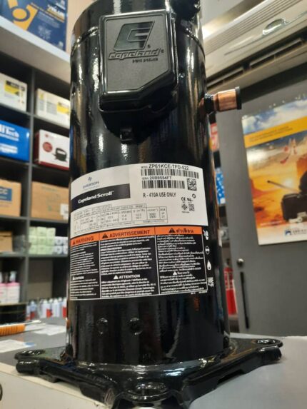 کمپرسور ZP385KCE-TED-550 از نوع اسکرال (Scroll) بوده و با مبرد R410A کار میکند. این مدل با توان بالا، عملکرد بیصدا و راندمان انرژی عالی برای استفاده در چیلرها، سیستمهای تهویه مطبوع مرکزی و پمپهای حرارتی طراحی شده است.